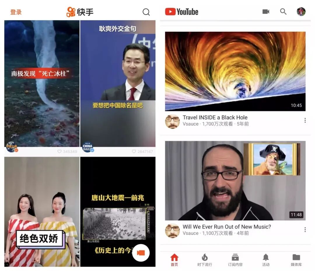 就目前主流市场上跟抖音同类别的APP来比较,包括快手、小红书、YouTube在内,多数视频类APP都采用了列表式或者瀑布流的UI布局,为的是给用户提供更多的预览和选择。